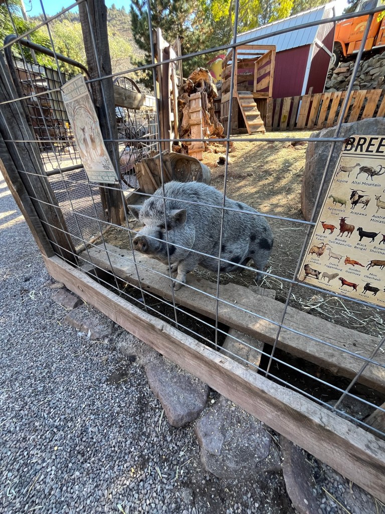 There was an abandoned house, but you couldn’t go in and signs in the yard warn of rattlesnakes. A barn held some better preserved pickup trucks. There was a barber pole, and an outhouse with a mannequin that screamed at you when you opened the door. I was excited to see a mine shaft, but quickly realized it is a fake walkway that only goes a few feet behind a shed.
