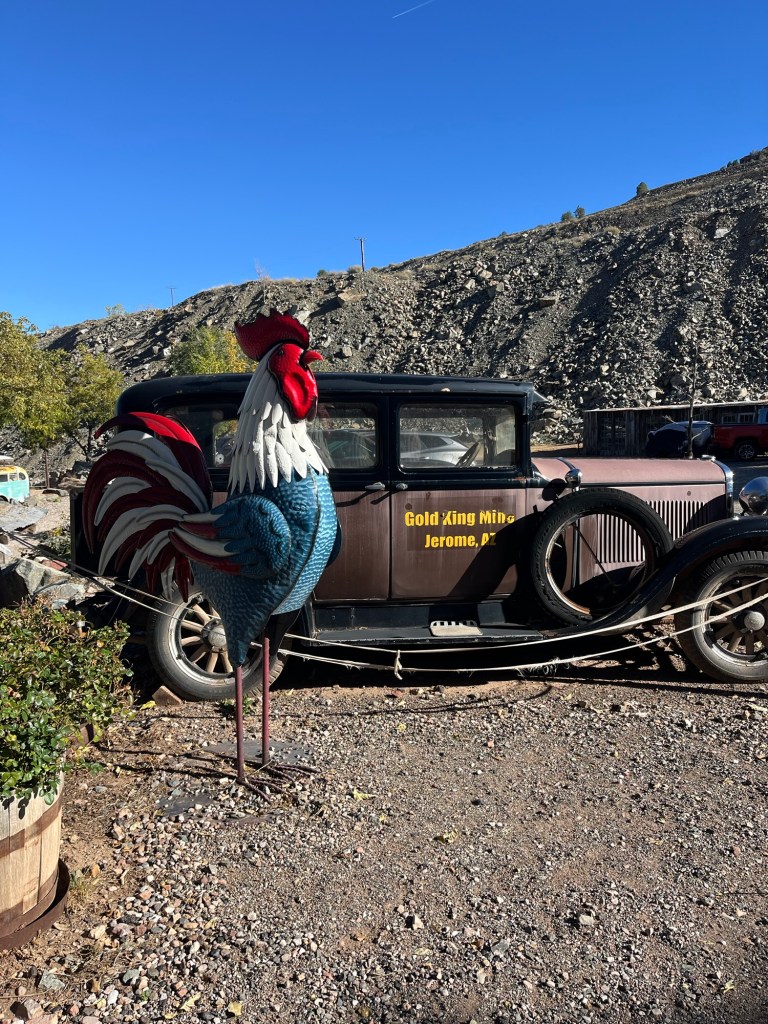 Occasionally you regret almost immediately your choice of adventure. I’m sad to say, today was one of those days. I was enticed by advertising. Signs along the highway teased us with promises of the King gold mine. It was just up the road a bit higher on the mountain from Jerome. I love a good mine tour, so I thought why not.