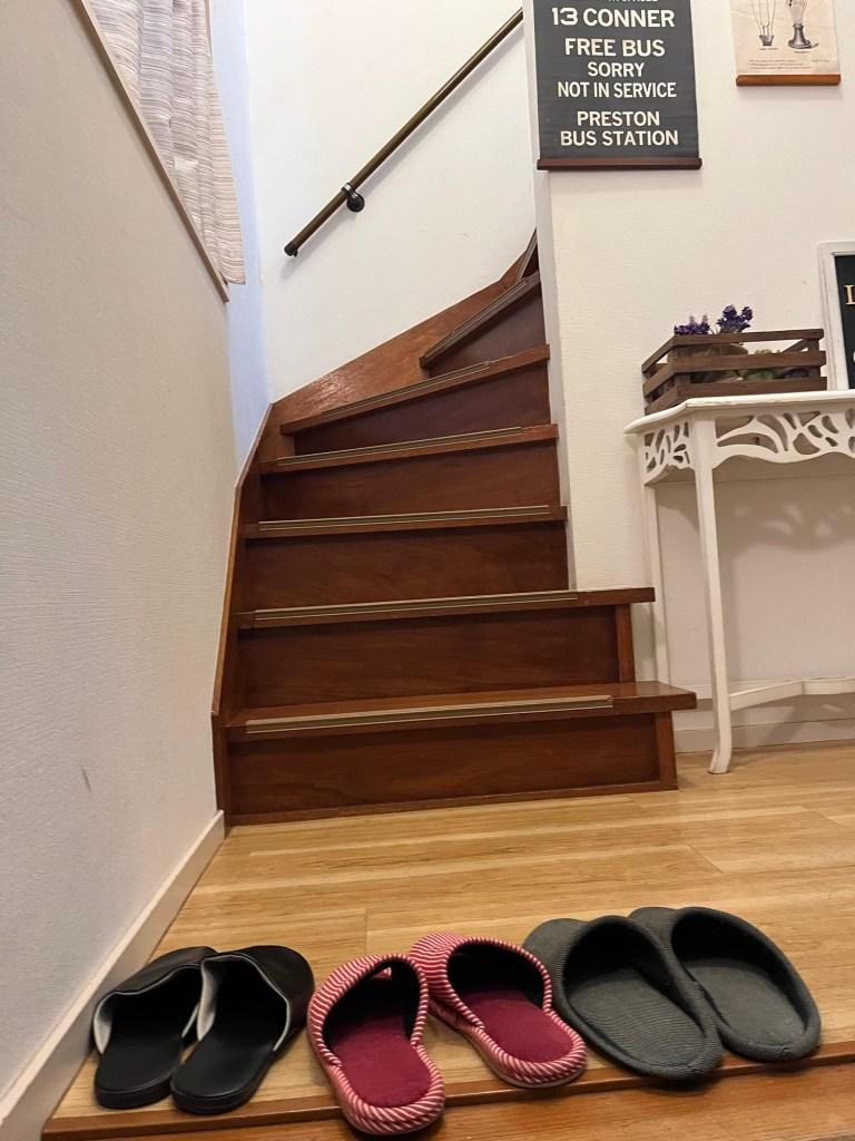 Right now I just want to unpack, take a hot bath, and get some sleep. We have slippers at the door, a gentle reminder to leave our outside shoes on the brick entryway. I slip into the smallest pair and head into the house.