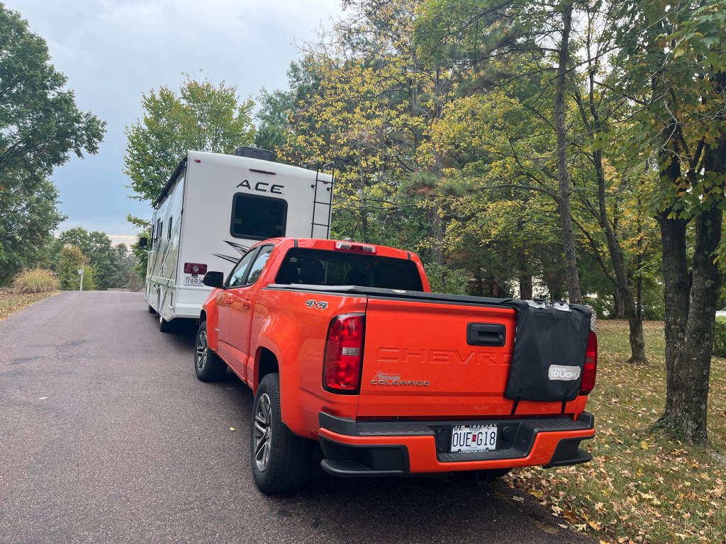 I remember to make sure I am in towing mode (there is a button for that). I turn on the cameras that help me see to the back and sides when passing. I attach the seat belt adjuster that my daughter made me to keep from feeling decapitated by the I’ll placed belt strap. Finally, I am ready to hit the road.
