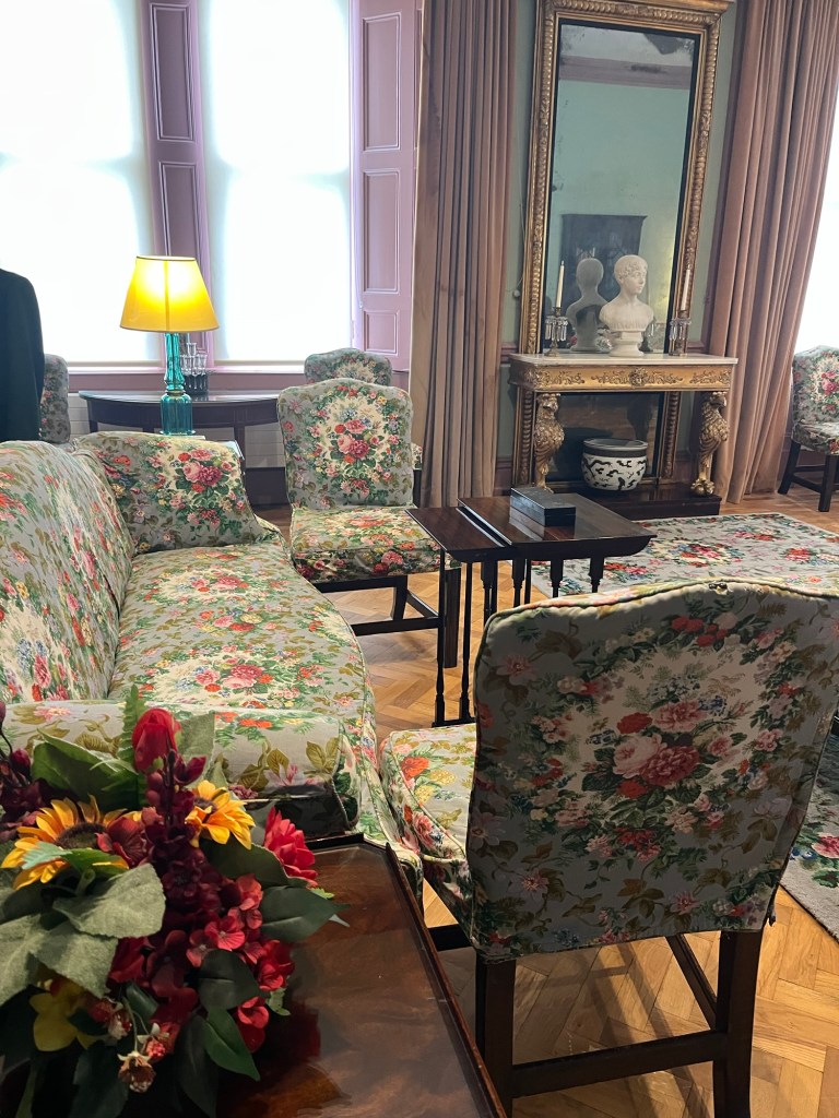 In the dining room, a screen sits in the corner with mirrors mounted at angles. Apparently the servants had to stand out of sight and with their backs turned. They used the mirrors to see what the guests may need. No wonder it is easy to impersonate the help in all the spy movies…no one actually noticed them.