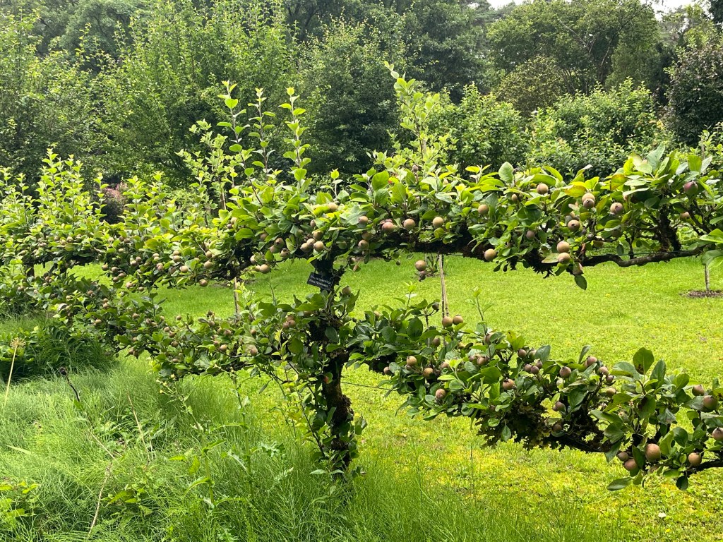 Headed downhill, we wander through themed gardens. Apple trees are trained to follow the fence lines. There is an Asian garden, and a Roman garden. So many beautiful possibilities.